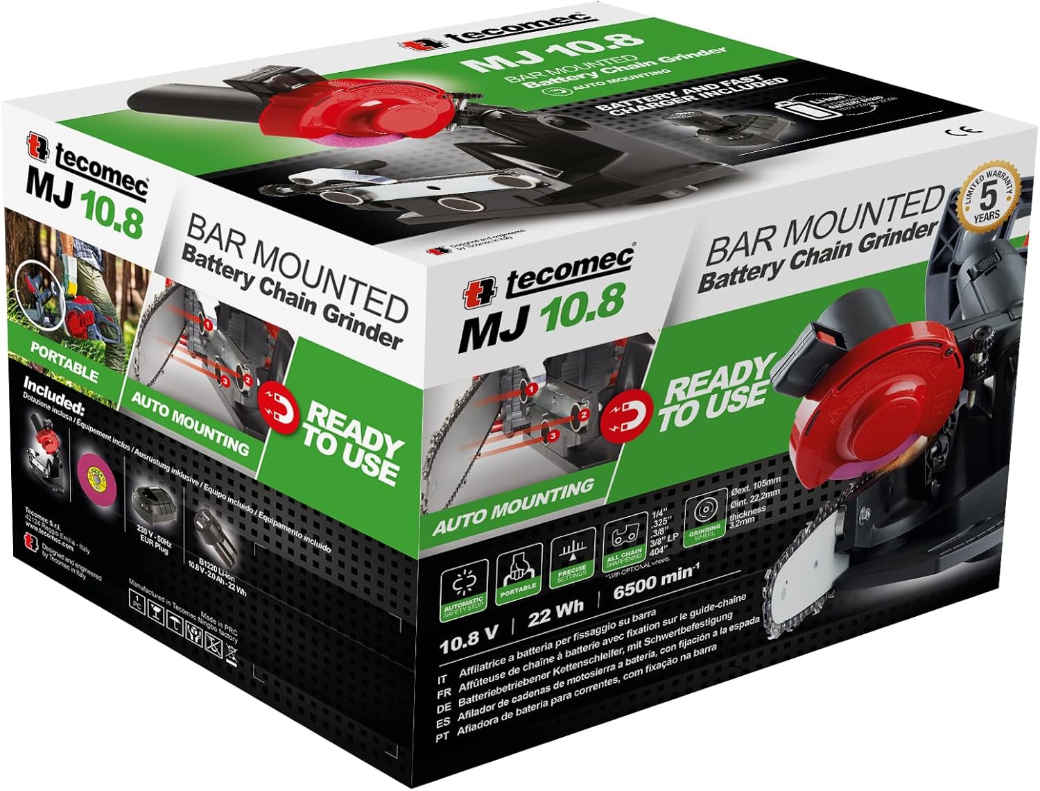 Slijp uw zaagkettingen waar u ook bent met deze gloednieuwe, fantastische Tecomec kettingslijper voor montage op het zaagblad!